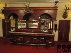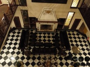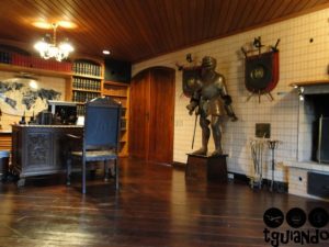 Faz parte da decoração quadros, carpetes, armaduras, brasões, livros, fugindo dos padrões comuns.
