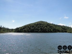 Um lindo e tranquilo lago dá boas vindas aos visitantes que chegam, montando uma linda paisagem junto às árvores ao redor da margem.