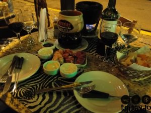 Com decoração temática em seus ambientes, o Safári Café tanto para quem quer um lugar um pouco mais aconchegante do lado de dentro ou quem quer observar a agitação da rua nas mesinhas da calçada. Pedimos uma sequência de fondue (carne, queijo e chocolate), todos com bons acompanhamentos, e um vinho, resultando no valor de R$ 154,69.