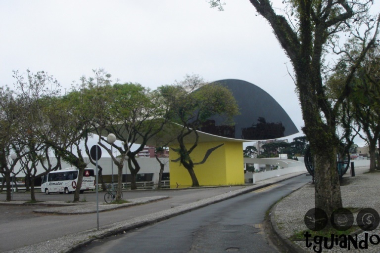 Depois de algumas fotos no Centro Cívico, fomos a pé até o Museu Oscar Niemeyer. Maior e mais moderno museu do Brasil. Projetado pelo arquiteto Oscar Niemeyer, o olho completa uma antiga obra que ele mesmo construiu, em 1976. Como o tempo era curto, não deu para entrarmos no museu, apenas fotos do lado de fora.