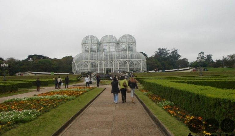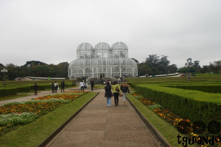 Até chegarmos em nossa primeira parada, passamos pelo Palácio Avenida, Centro de Convenções, Shopping Estação e Teatro Paiol. Descemos do ônibus no cartão postal da cidade: Jardim Botânico, onde tem o Palácio de Cristal. Criado em 1991, o local tem uma estufa de 420 m² feita de ferro e vidro inspirada no Palácio de Cristal de Londres. Dentro dela, há plantas características de regiões tropicais e ao redor, museu botânico, mata nativa, trilhas e o espaço cultural Frans Krajcberg.