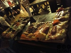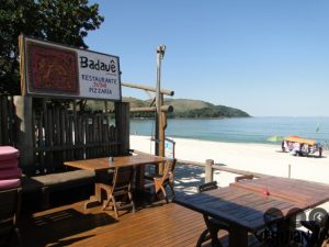 À noite, escolhemos um dos restaurantes mais tradicionais do Litoral Norte, Badauê Maresias, com ambiente descontraído e aconchegante, tendas e almofadas coloridas e visão da praia de Maresias. Para comer: pizza quadrada dividida em três sabores, . O restaurante fica beirando a praia na Avenida Francisco Loup, 901.