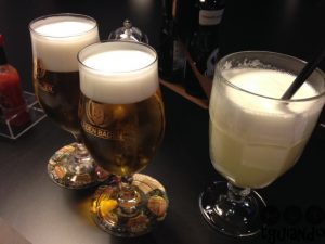 Pedimos algumas bebidas, como chopp Eisenbahn, mas, por ser a primeira semana do local aberto, estavam sem estoque. O que não poderia faltar era o chopp Baden Baden.