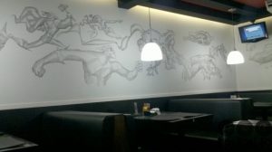 De fácil acesso e fachada que chama atenção de quem passa por perto, o Burgguer’s conta com ambiente descontraído e paredes decoradas com imagens de super-heróis.