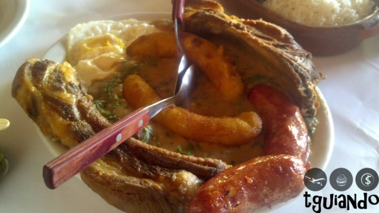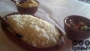 Depois de muita dúvida, optamos pelo tutu à moda (arroz, farinha, vinagrete, ovo, linguiça, banana à milanesa e costelinha), R$ 74,50, serve muito bem duas pessoas.