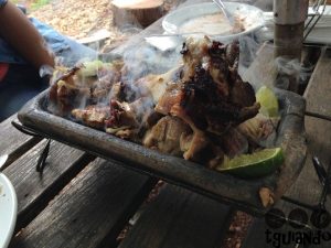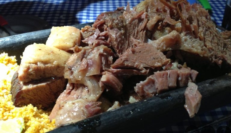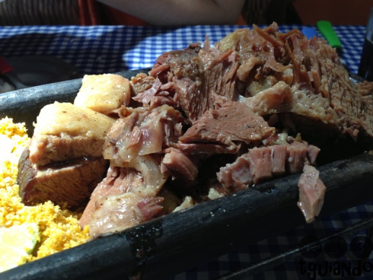 A escolha foi difícil, mas optamos por um boi manso (costela no bafo), R$ 57, que no cardápio indica que a refeição é para até 4 pessoas. A porção vem em em uma telha bem servida acompanhando farofa e limão.