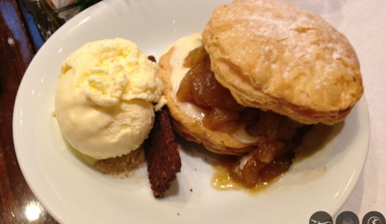 Para sobremesa, escolhemos a novidade da casa: apple dessert (sobremesa de maça caramelada e creme patissier com massa folhada e crocante de brownie, acompanha sorvete de creme e farofa crocante), R$ 17,40. Maravilhosa!!