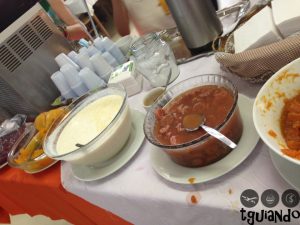 No valor pago para o almoço está incluso comida, sobremesa e suco de laranja e uva, todos à vontade. De sobremesa tinha sagu, doce de laranja, arroz doce, doce de banana e doce abóbora.