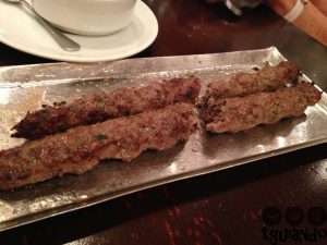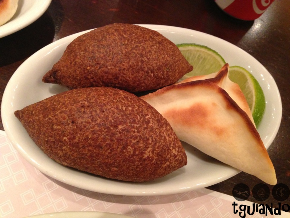 Pedimos também um acompanhamento de arroz sírio (arroz preparado à moda síria, com aletria, macarrãozinho cabelo de anjo), R$ 14,20, kafta (carne moída temperada à moda libanesa, grelhada no espeto; acompanha molho à base de tomate, cebolinha e salsinha), R$ 37,20, kibe frito (recheado com carne moída e castanha), R$ 5,60, sfiha de verdura (delicado recheio de espinafre e escarola, temperado à moda libanesa), R$ 4,20, sfiha fechada, R$ 4,50, e aberta, R$ 4,50, (recheada com carne, temperada à nossa moda).