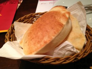 Para comer, começamos pedindo de entrada dois pães sírio, R$ 1,90 cada, que para nossa surpresa vieram quentes, macios e “estufados”.