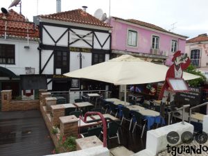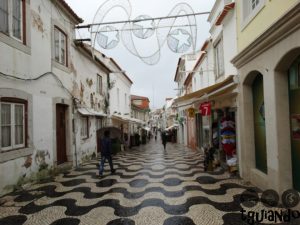 Andamos pela Rua Direita, principal rua de comércio, até chegarmos no Largo da Praia da Rainha, como estava frio e chovendo, não descemos até a praia.