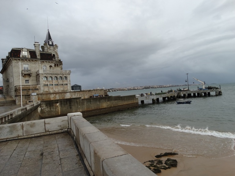 De longe, vimos o Palácio Seixas, um dos mais emblemáticos edifícios existentes em Cascais, é uma construção do início do século XX e funciona hoje como messe de oficiais da Marinha, mentendo grande parte da beleza e fausto no seu interior.