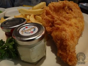 Gente, é realmente uma delícia, tanto o peixe quanto as batatas são sequinhas, crocantes e porção muito caprichada. O molho de ervilha é bom, mas não é indispnesável.