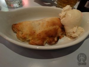 As sobremesas escolhidas foram: cartmel sticky toffee pudding (with 1 scoop of ice cream), £ 4,6, e apple pie (with 1 scoop of ice cream), £ 4,5. Bem gostosas, tanto o pudim de caramelo quanto a torta de maçã.