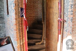 O caminho é um pouco apertado, com vários degraus e portas pequenas.