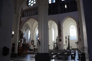 Originalmente com uma construção de estilo românico, o resultado final é predominante gótico pelo tempo que levou a construir. O que chama a atenção é a sua torre com 122 metros de altura, a mais alta de Bruges.