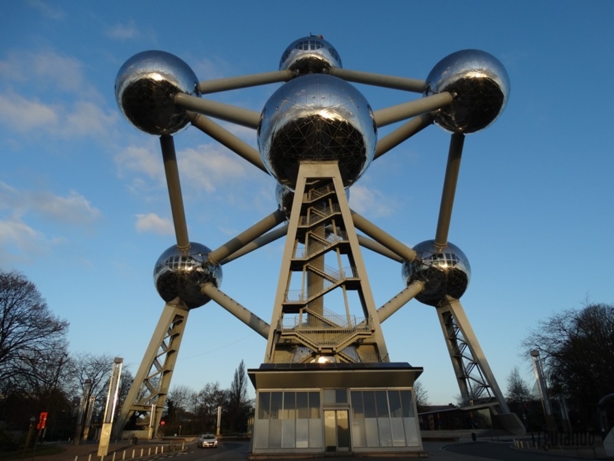 É a Torre Eiffel de Bruxelas. É a escultura de uma molécula. Pode entrar e visitar o museu interno e ter uma vista panorâmica da cidade.