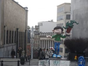 Também chamada de Nona Arte, em Bruxelas existe uma rota chamada de “Comic Book Route” e o caminho leva ao longo de vários muros e edifícios da cidade, principalmente nos bairros de Laeken e Auderghem, onde grandes e muitos murais foram coloridos com os personagens dos desenhos animados famosos locais (Tintin, Smurf, Asterix, Lucky Luke, Gaston, e muitos outros).