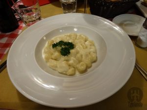 Pedimos prosciutto crudo, € 16, pennette amatriciana, € 14,5, gnocchi, € 14,5, e um peixe para dividir, que não anotamos o nome nem o valor. Estava tudo bem gostoso. O curioso foi o peixe, servido inteiro, porém, depois de o garçom “limpar” ali na mesa quase não sobrou para comermos.