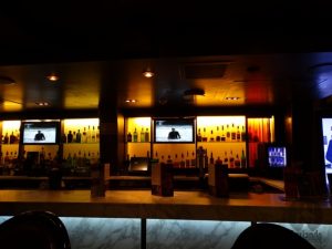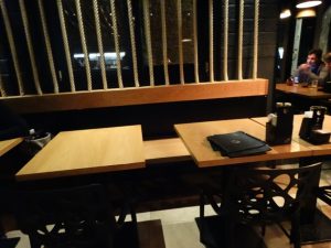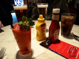 Estava bem lotado, no entanto, só conseguimos um pequena mesa alta perto do bar.