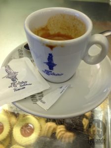 Durante uma manhã andando por ruas estreitas, pontes e vielas, paramos para descansar perto da Igreja di San Barnaba e aproveitamos para tomar um café, € 4.