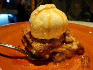 Finalizamos com a sobremesa fresh apple cobbler (think, juicy apples are mixed with the finest spices and baked until golden brown, our apple cobbler is so good you’ll think your grandmother made it, served warn with vanilla ice cream, topped with walnuts and caramel sauce), € 9,25.