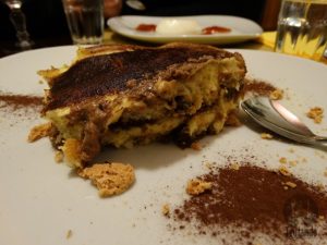 Por fim, as sobremesas (dolci), tiramissù, € 6, e panna cotta, € 6.