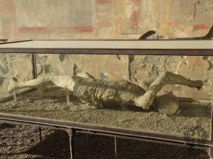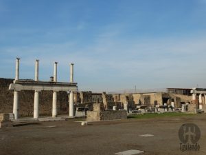 Ou Pompeios é um sítio arqueológico que preservava importantes construções do império romano, situada a 22 km da cidade de Nápoles. Hoje uma cidade soterrada por metros de cinzas e pedras-pomes durante uma grande erupção do vulcão Vesúvio em 79 d.c., que sepultou completamente a cidade. Ela se manteve oculta por 1600 anos, até ser reencontrada por acaso em 1748.