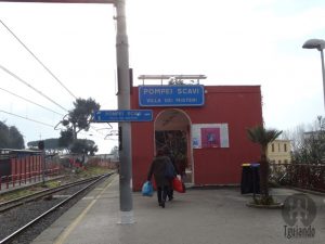 Da segunda vez, fizemos um bate-volta a partir de Sorrento. Pegamos o trem, € 2,2, às 9:37h e chegamos às 10:12h na Pompei Scavi, que deixa pertinho da entrada do complexo. Assim que chegamos, fomos na bilheteria, € 44.