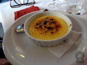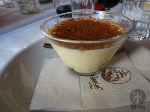 As sobremesas foram: crema catalana, € 5,5, tiramisú, € 5,5, e mais 2 dolce del giono, € 5,5, onde escolhemos do carrinho, era tipo uma torta.