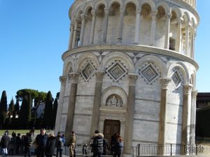 A torre inclinada, ou simplesmente Torre de Pisa, é um campanário da catedral da cidade, situada atrás da catedral, designada para guardar os 7 sinos que pesam entre 300 kg e 3.600 kg.