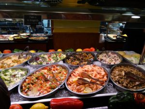 Restaurante com sistema de self service (menú buffet libre, € 12), com várias opções desde saladas, petiscos, pratos quentes e sobremesas. A comida é gostosa.