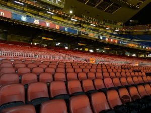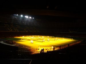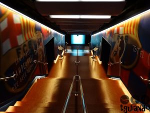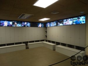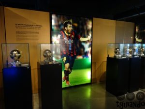 Nossa primeira parada em Barcelona foi para conhecer o estádio. Logo que chegamos no hotel, deixamos as malas e fomos de metrô. Compramos os ingressos, € 23 por pessoa, na bilheteria e fomos informados que logo fechariam a área do campo, sendo assim, teria que ser o primeiro local a visitar. E lá fomos nós. Quem vê o estádio por fora, na rua, não tem ideia da dimensão do mesmo. Mesmo à noite, achamos bonito. Visitamos também a área dos troféus, vestiários, museu com fotos dos jogadores e, ao final do tour, a loja.