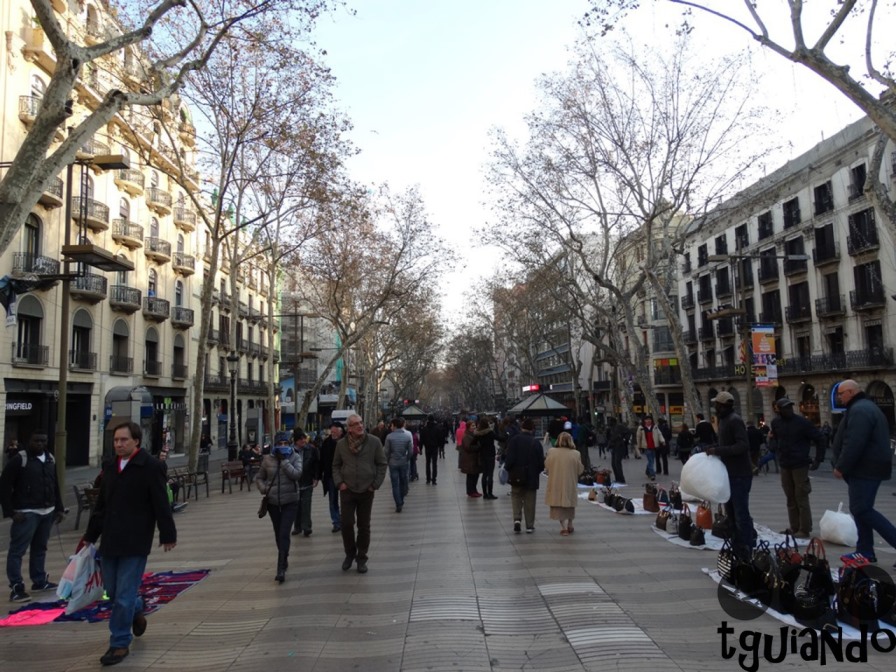 Uma larga avenida de pedestre que começa na Plaza Cataluña e termina no monumento de Colón.