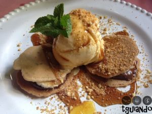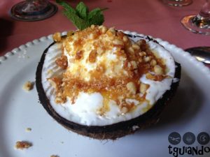 Depois pedimos as sobremesas: vereda (bolachas de biju recheadas com Nutella e banana, acompanha sorvete de creme e farofa crocante), R$ 17,50, e cocorrico (sorvete artesanal de coco, calda de gengibre e praliné, servidos na casca do coco seco), R$ 18,50. Perfeitas!!