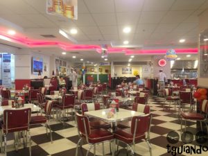 Ambiente grande, com decoração colorida e garçons simpáticos e animados chamam atenção logo na entrada.