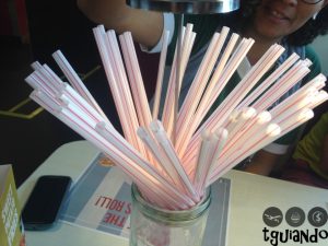 Não passou despercebido o suporte de canudos e o “rádio” que estava na mesa, onde podíamoes escolher músicas do ambiente.
