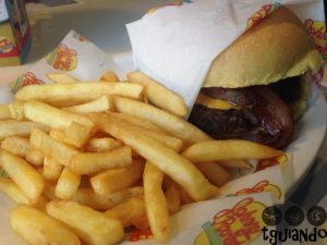 Após o pedido das bebidas, os lanches escolhidos foram: royal burguer double (hambuérguer Wagyu, pão australiano, maionese, onion rings, bacon e cheddar cremoso), R$ 37,90, smoke house single (fatias de bacon, onion rings, queijo cheddar e molho smoke house barbecue-ranch), R$ 28,10, bacon chedar double (fatias de bacon, tomate, queijo cheddar, alface, cebola e molho especial), R$ 33,50, e premium burguer single (hambúrguer Wagyu, pão especial, queijos suíço e cheddar, tomate e cebola roxa), R$ 32,90. Todos acompanham batata frita.