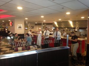 Enquanto estávamos comendo, trocaram a música, por uma mais animada e de repente todos os garçons se juntam em frente ao balcão e começam uma dança sincronizada, deixando o ambiente ainda mais divertido.