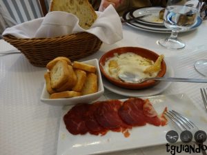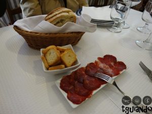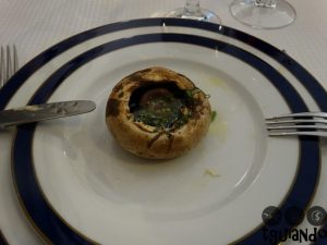 Logo que nos sentamos, serviram-nos vinho da casa e água. Couvert com pães, torradas, presunto e algi como batata com queijo. Na sequencia, cogumelo com azeite.