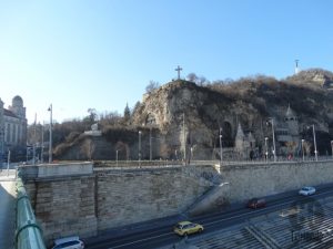 Assim como a maioria dos turistas, fomos até o topo do Monte Gellert só pela fabulosa vista panorâmica de Budapeste, mas vimos vários depoimentos que vale a pena pagar o ingresso para conhecer o bunker, abrigo antiaéreo construído durante a II Guerra Mundial pelos alemães. Para chegar até lá, são vários degraus, há caminhos com rampas, além de bancos e pontos estratégicos para descanso enquanto aprecia a vista de vários ângulos.