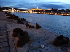 Às margens do rio Danúbio, a poucos passos do prédio do Parlamento Húngaro, está o emocionante monumento que homenageia os judeus húngaros mortos por membros da milícia da Cruz de Ferro, um partido que compartilhava as mesmas ideias do partido nazista de Hitler.