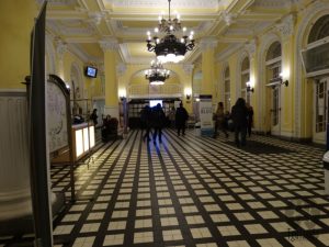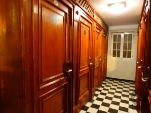 Claro que este programa já estava marcado e comprado, € 18, antes de virmos para cá. Entrando pela bonita e imponente fachada, logo está a bilheteria. Ali nos entregaram as toalhas e as pulseiras, que dão acesso aos armários e piscinas. O lugar é bem grande, mas não é difícil se achar. Logo passa-se pela área dos vestiários e banheiros, do lado direito o feminino e, do lado esquerdo, masculino. Ao subir as escadas encontram-se ainda as cabines privadas. Por falta de informação e sem ter certeza, tínhamos direito a essas cabines, onde, além de usar para se trocar, é possível deixar seus pertences ali. Mas ok, contratempos e pequenas confusões acontecem, mas nada que não seja resolvido. Chegamos por volta das 15:15h e saímos às 18:30h.