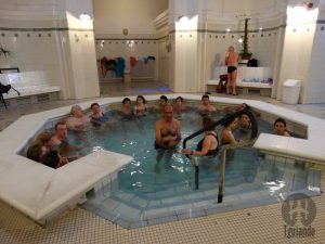 Não tem como vir à Budapeste e não conhecer as famosas termas!! Apesar do frio que fazia, cerca de -1°C, a água estava muito quente, uma delícia!! E ao começar escurecer, acreditem, mesmo com o dia todo nublado, tivemos um belo pôr-do-sol.. Foi uma tarde diferente, descontraída e inesquecível!!