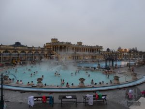 Também conhecido como Termas Széchenyi, que engloba as maiores e mais quentes termas de Budapeste, possui diversas piscinas internas e ao ar livre, incluindo 15 piscinas internas alimentadas por fontes.
