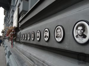 O exterior do edifício está decorado com esculturas de músicos e compositores famosos.