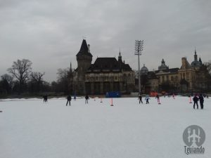 Do hotel até aqui viemos de táxi, 3.400 Ft. A primeira coisa que fizemos foi a patinação no gelo, mesmo não estando em nosso roteiro. Pagamos a entrada, 1.000 Ft, e locação dos patins, 800 Ft. Logo após a entrada, tem uma área com bancos diversos e são disponibilizados armários para guarda de volumes. Ficamos cerca de 1h e parece que foram 10 minutos. Ali vão pessoas de todas as idades, crianças, jovens, idosos, locais e turistas. Mesmo com tempo fechado e frio, foi legal e bem divertido… Vale a pena para quem tiver a oportunidade!!