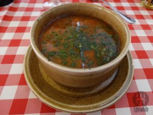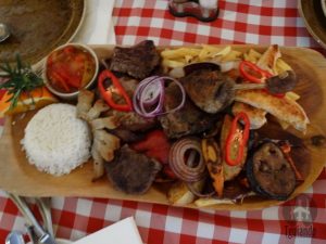 Depois da sopa, um bonito espeto de carne com batatats e vegetais e uma “porção” de difrentes tipos de carne com cebola, pimentão, batata e pedimos arroz!! Sim, um dos raros lugares que encontramos arroz e aliás, bem parecido com o brasileiro.