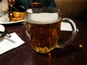 Começamos pedindo as bebidas, fruitapalooza (Malibu coconut, banana liqueur, sweet & sour mix and strawberry purée, topped with 7Up), 2100 Ft, piña colada (frozen concoction of Havana Club 3 year-old Rum, Malibu coconut and piña colada mix), 2100 Ft, cerveja Dreher bak larger, 900 Ft, Pilsen Urquell, 1500 Ft.