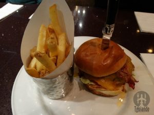 Os pratos escolhidos foram: quesadilla beef 2014, 4300 Ft, grilled norwesgian salmon (8-oz filet, grilled tender and drizzled with sweet and spicy barbecue sauce, served with golden mashed potatoes and seasonal veggie), 5100 Ft, original legendary burger (topped with smoked bacon, cheddar cheese, golden fried onion ring, crisp lettuce and vine-ripened tomato), 3800 Ft, hickory barbecue bacon cheeseburger (basted with hickory barbecue sauce and topped with caramelized onions, cheddar cheese, smoked bacon, crisp lettuce and vine-ripened tomato), 3700 Ft.